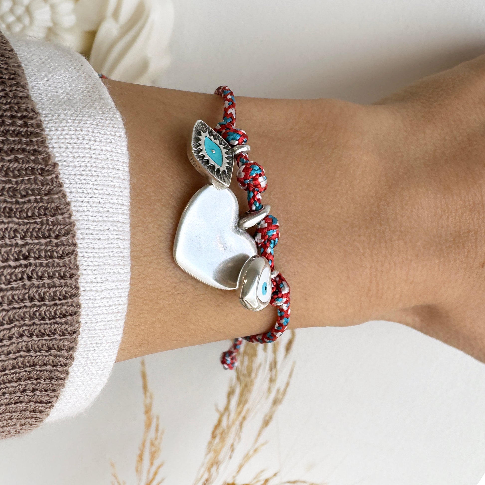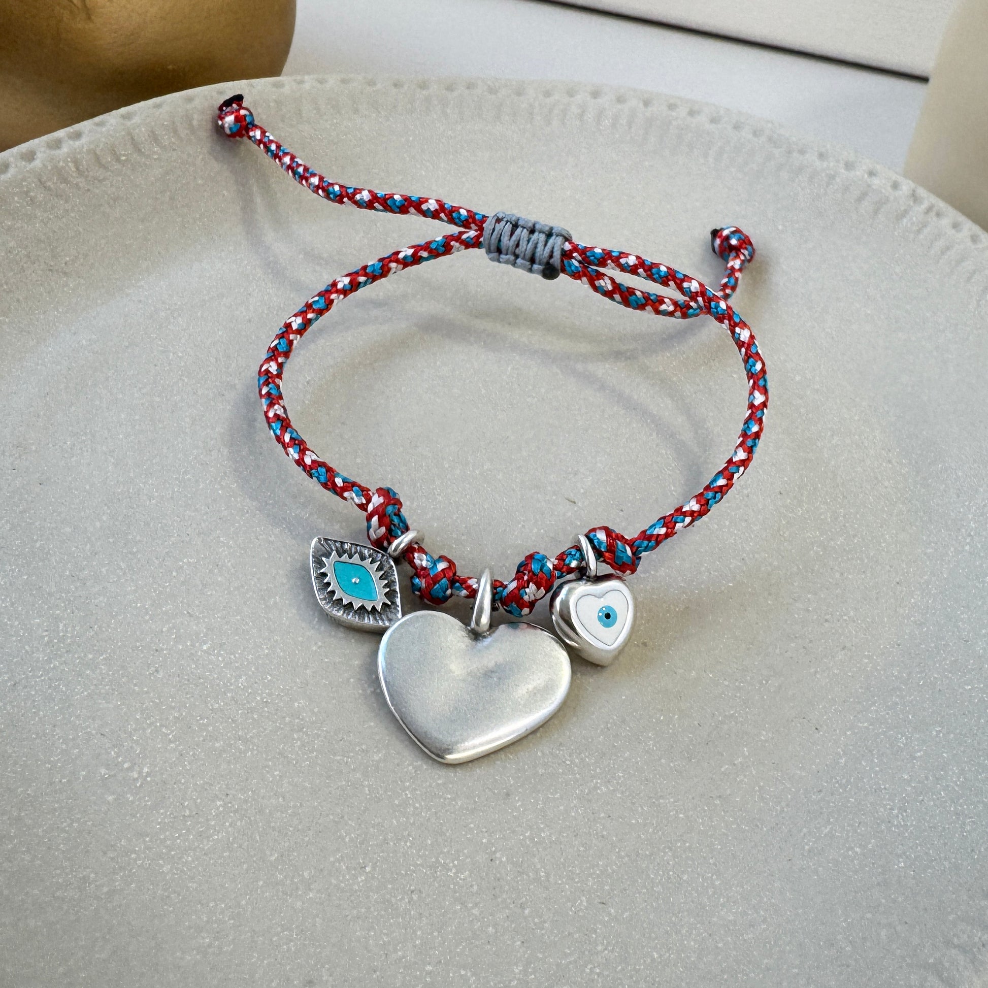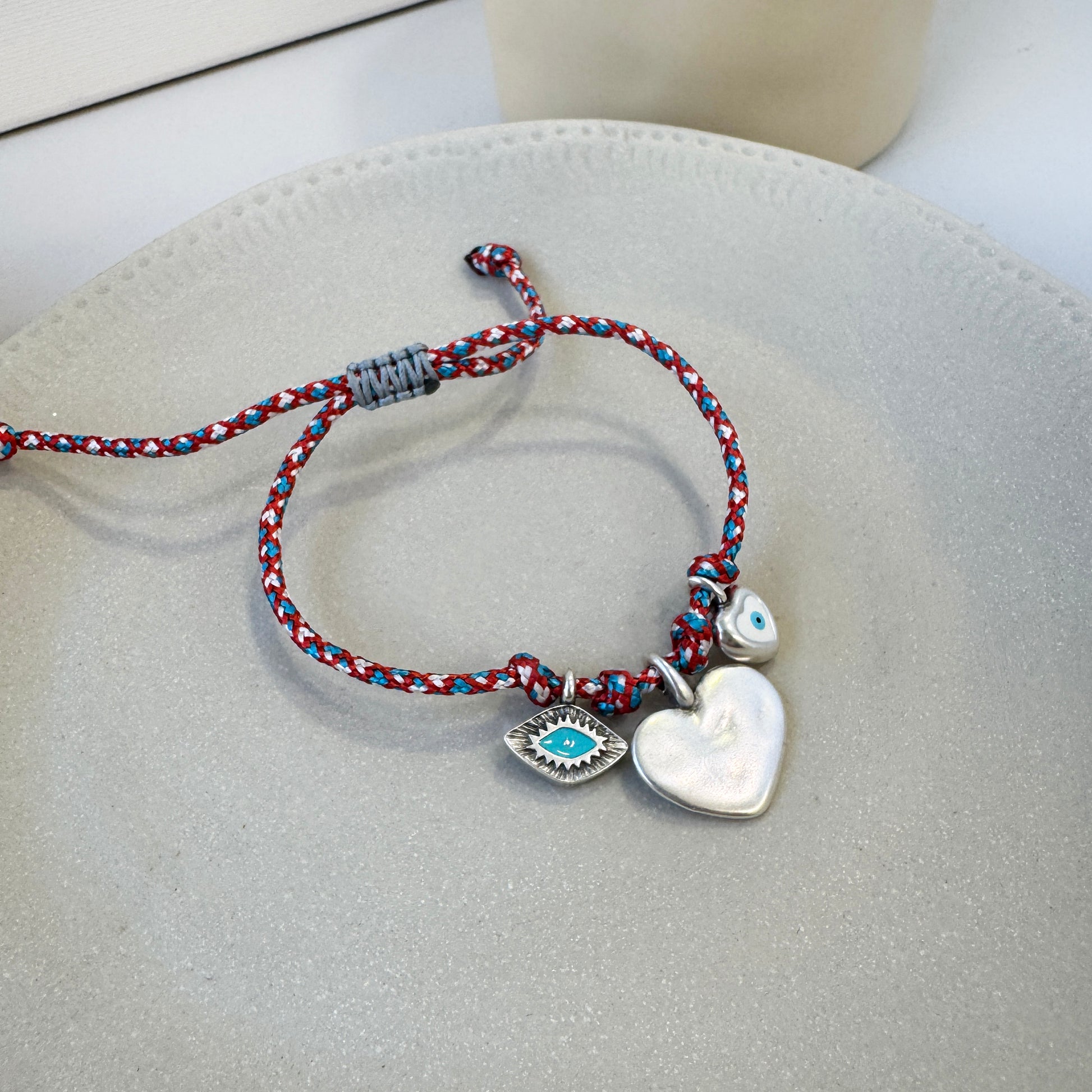 Βραχιολάκι Μαρτάκι με 2 καρδιές στοιχεια και ένα ματάκι.