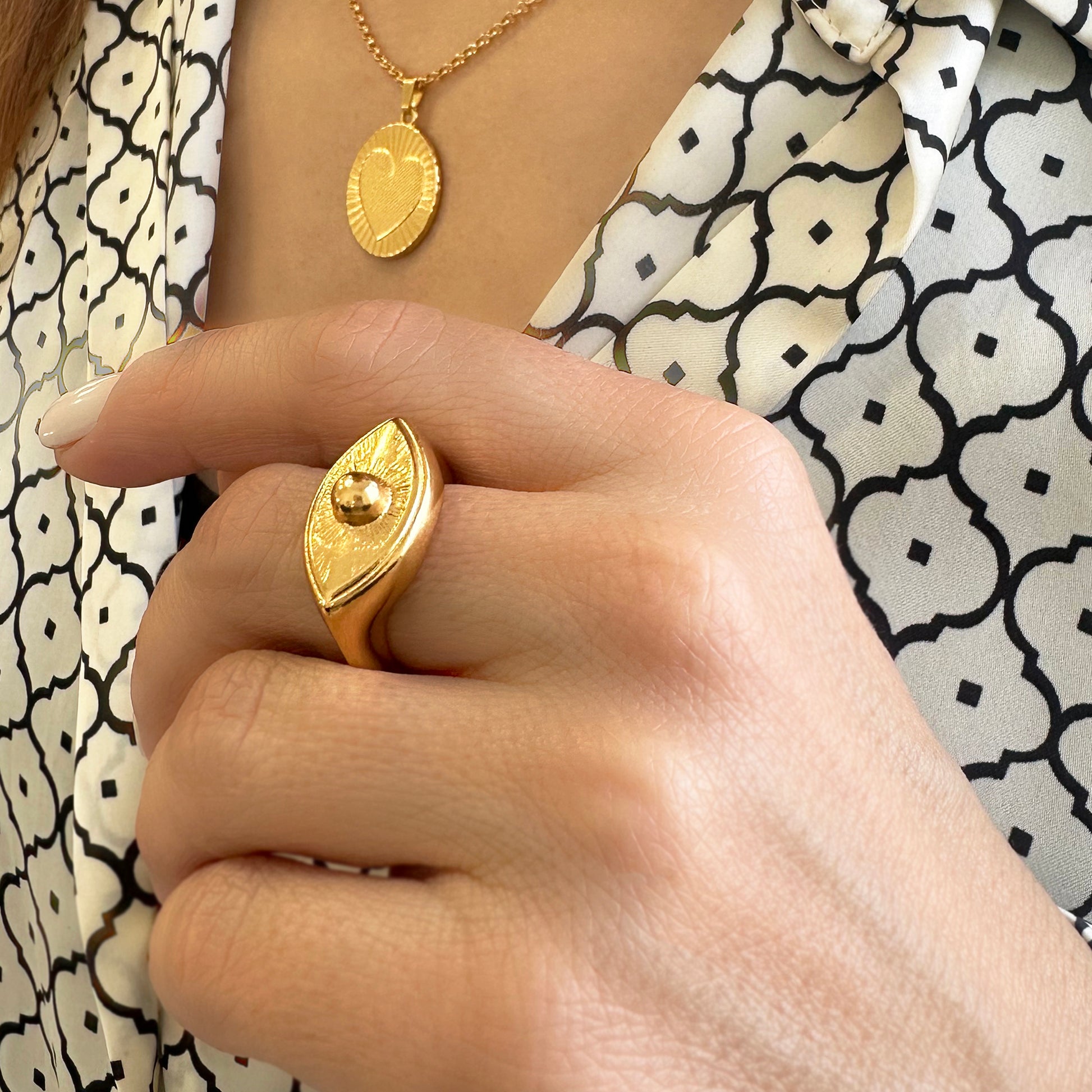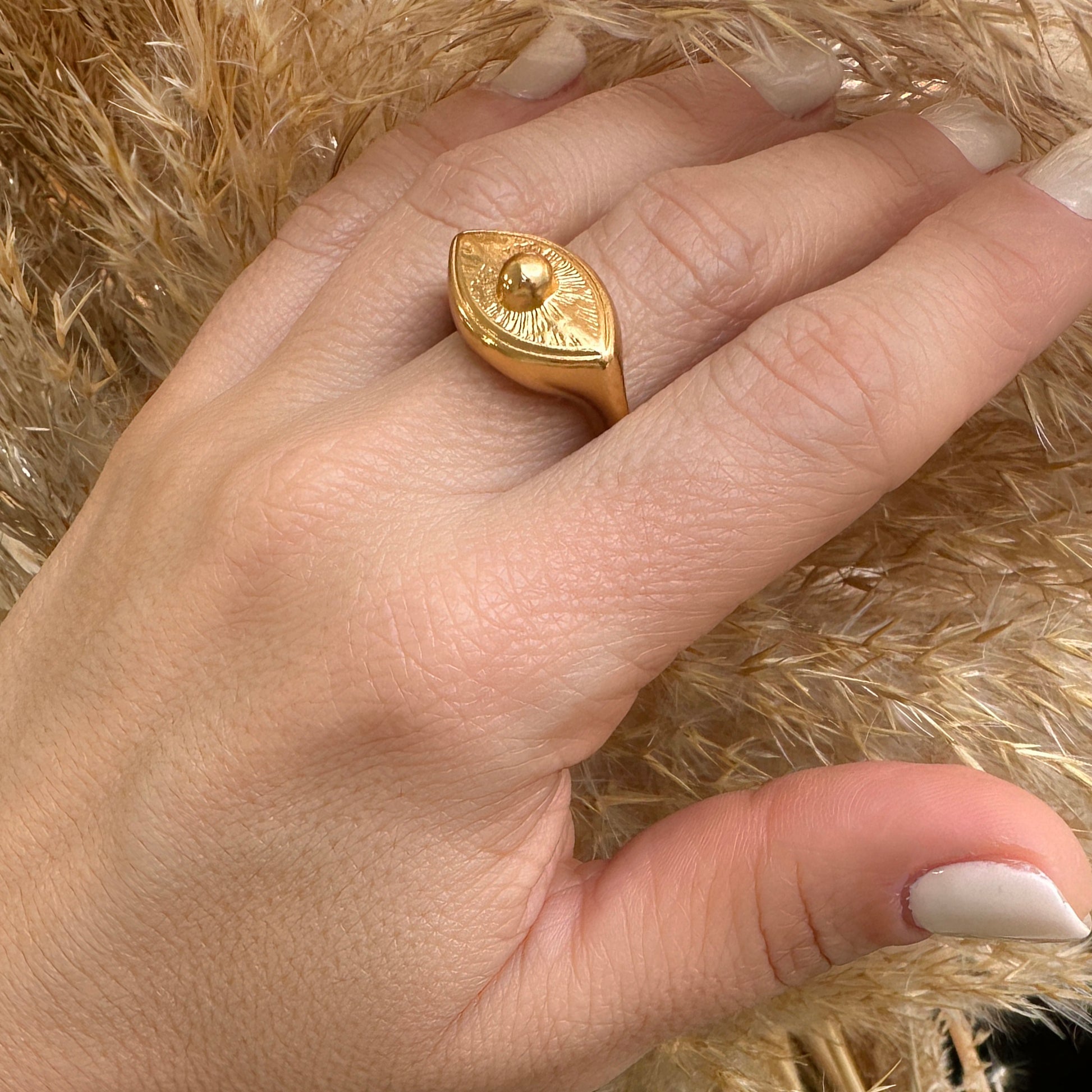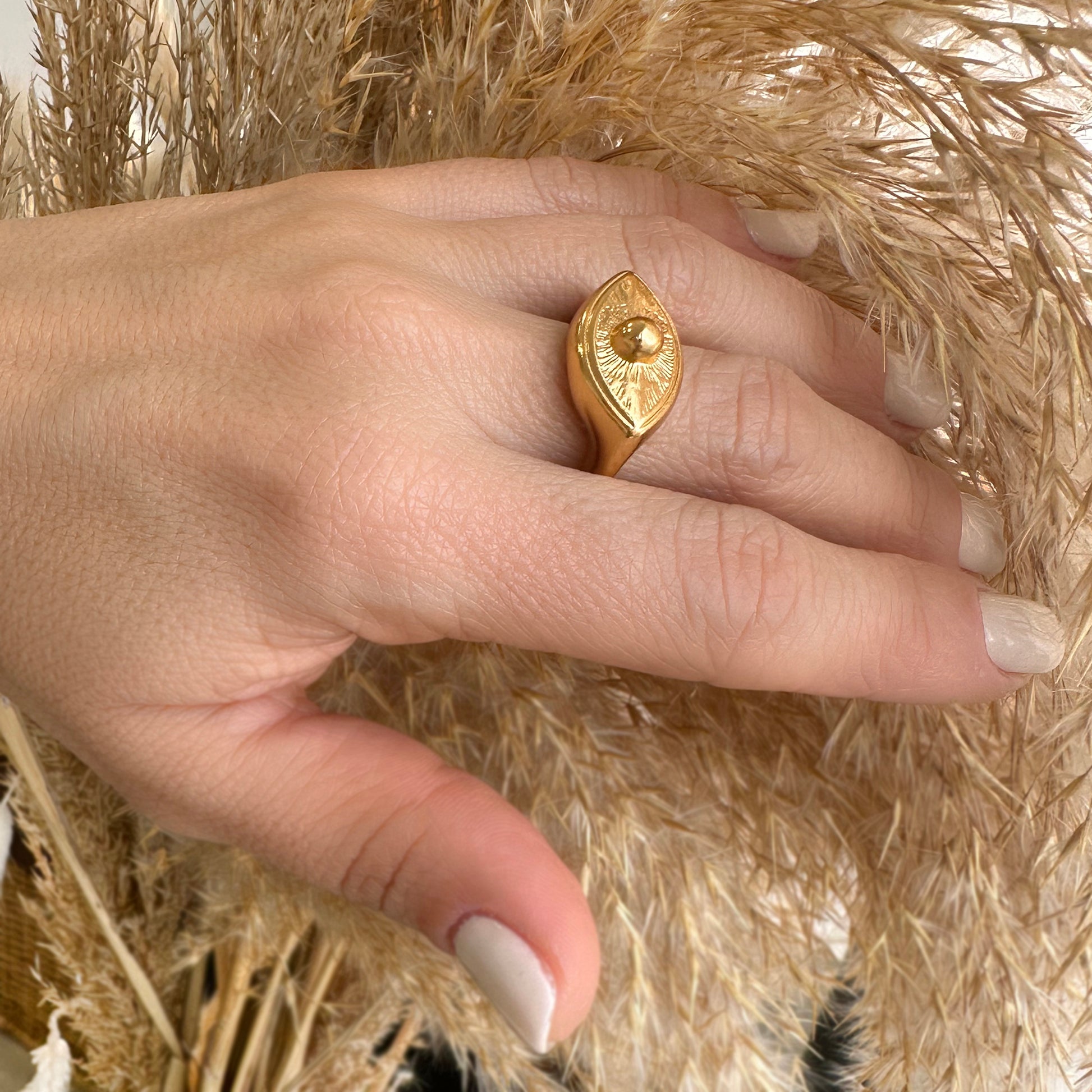 Επίχρυσο δαχτυλίδι με εντυπωσιακό boho evil eye design