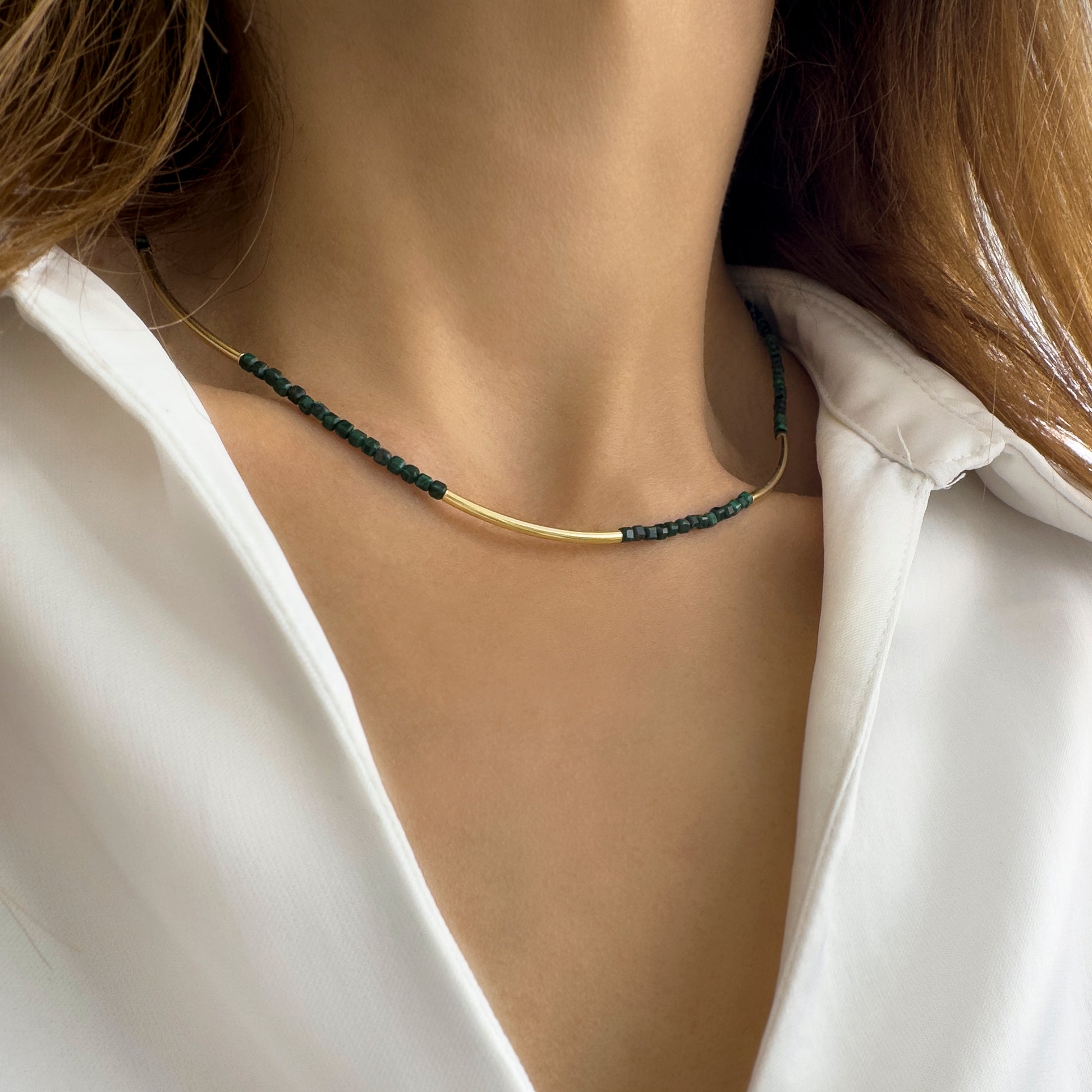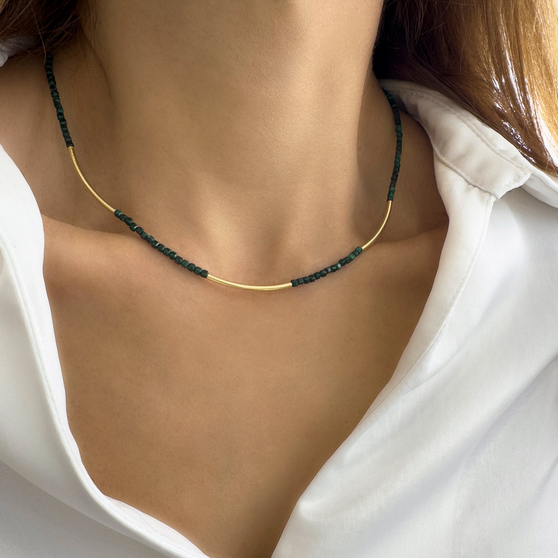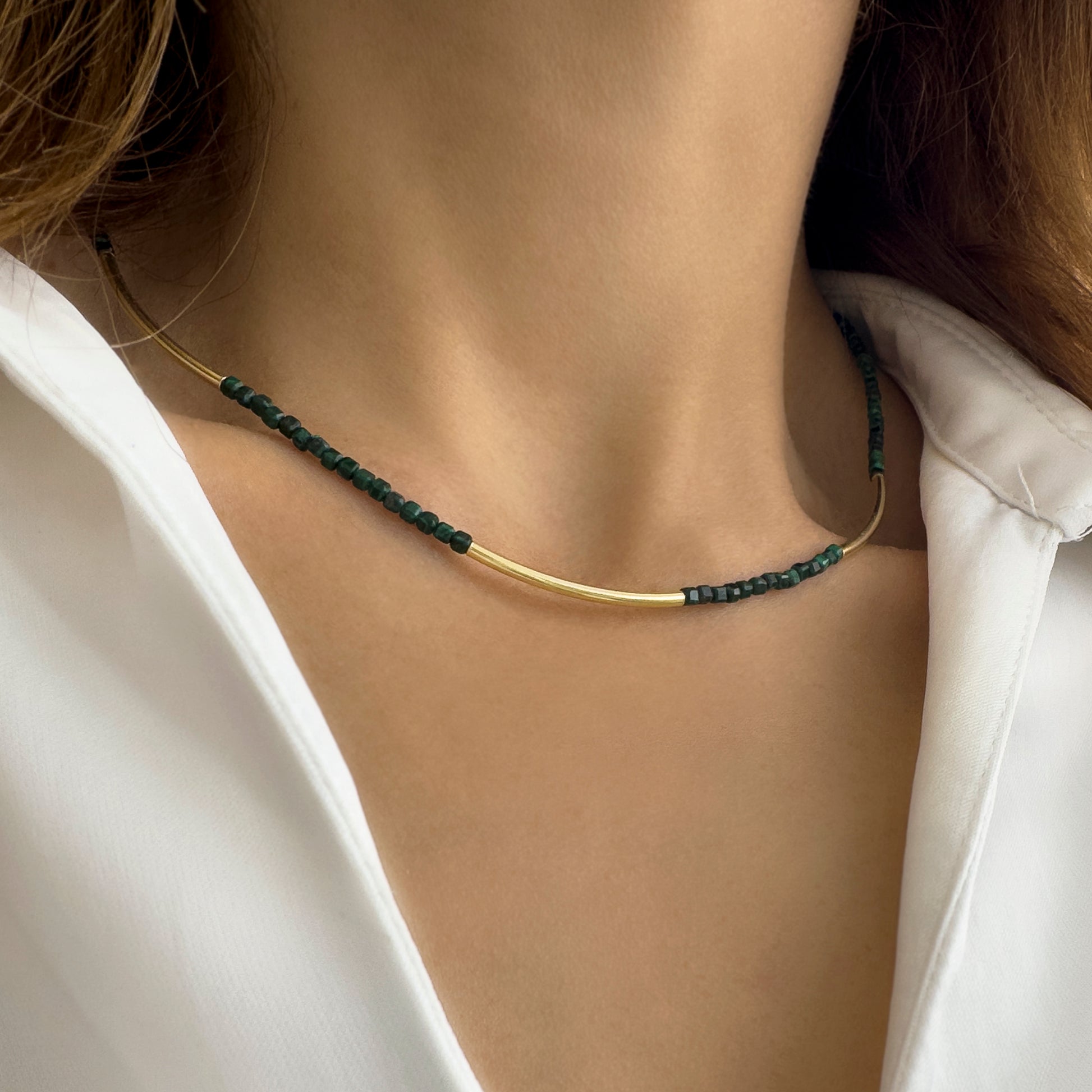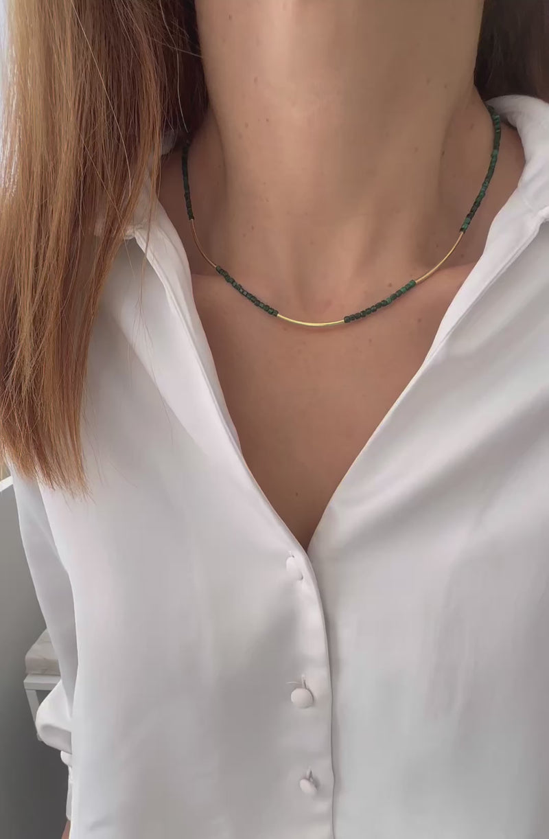 Κολιέ με μαλαχίτη και μπάρες. Ασήμι 925