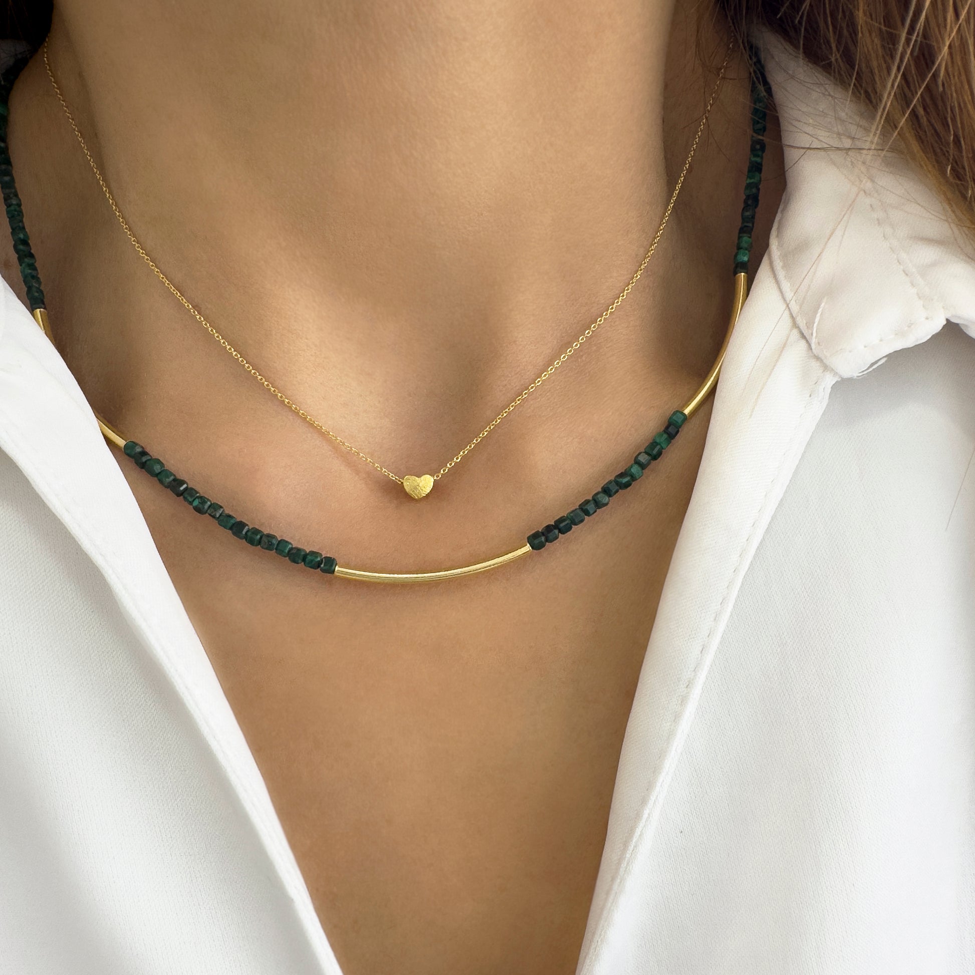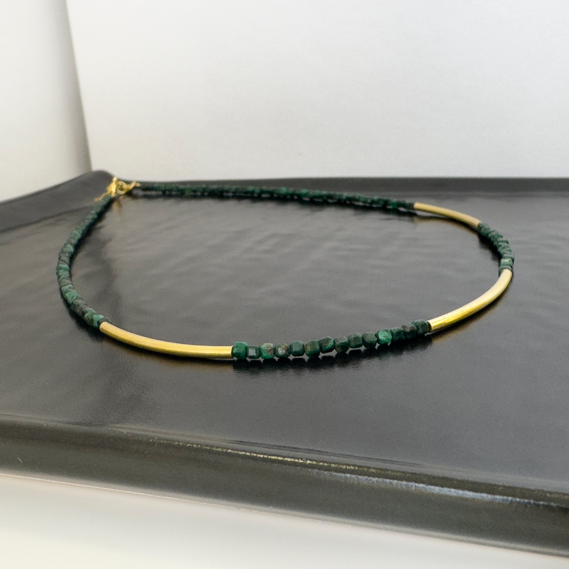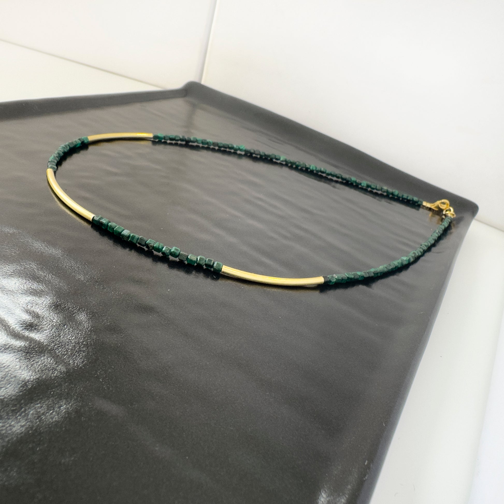 Με μαλαχίτη σε σχήμα μικρού κύβου και επίχρυσες μικρές μπάρες.