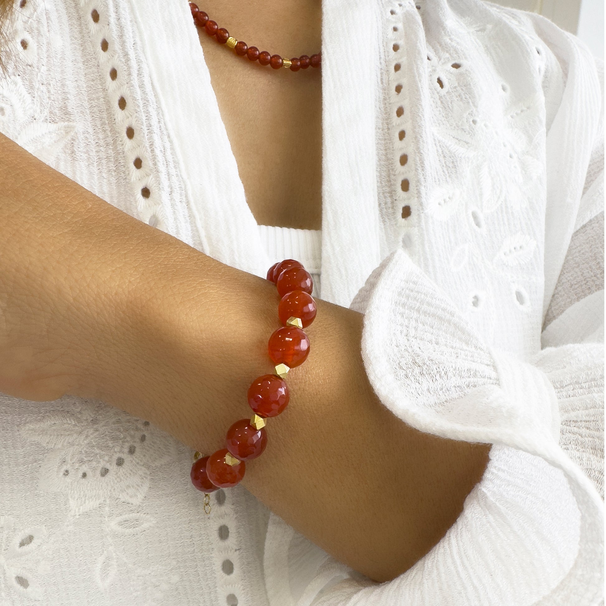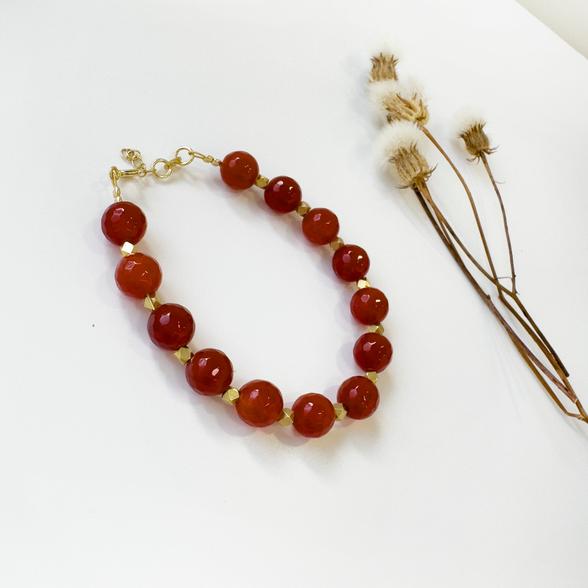 Real Carnelian Gemstone bracelet with gold beads.