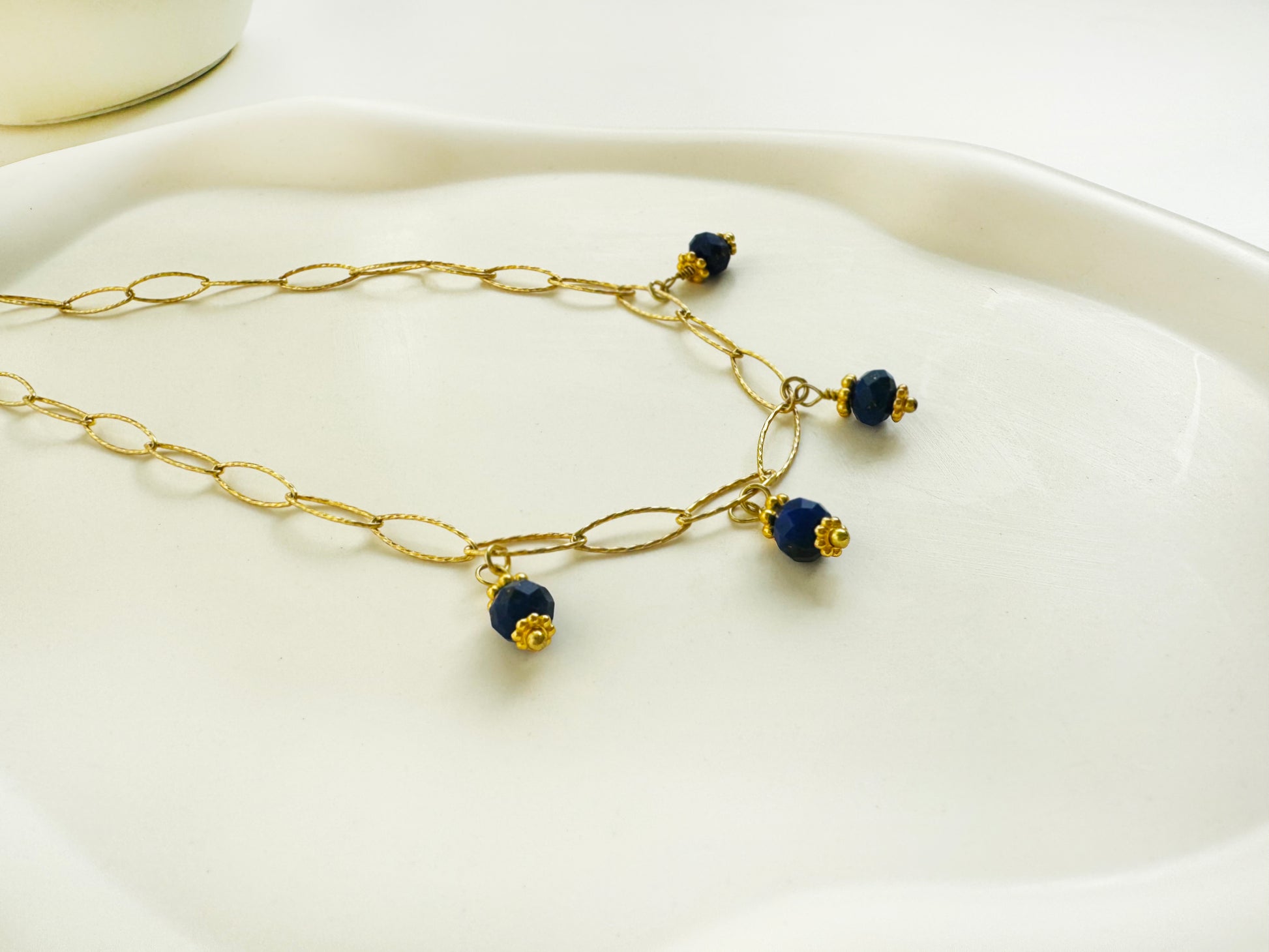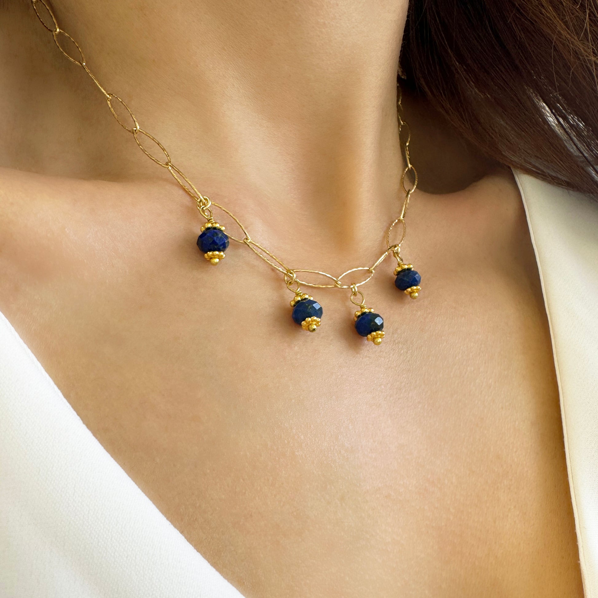 Paperclip chain with lapis lazuli small gemstone pendants