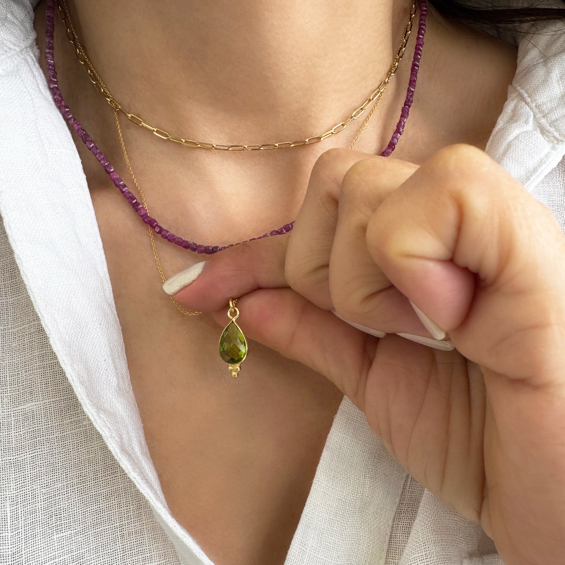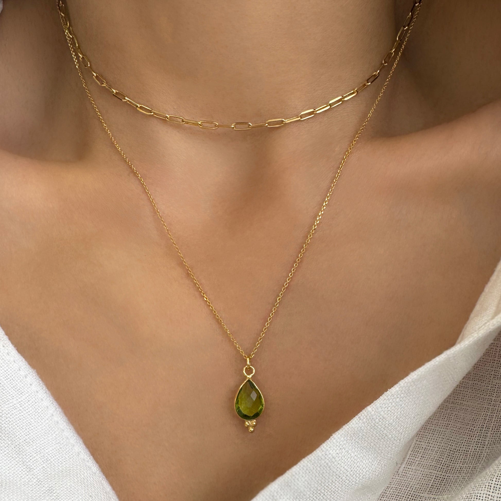 This Peridot Drop necklace is great for wearing alone or for layering with other necklaces.