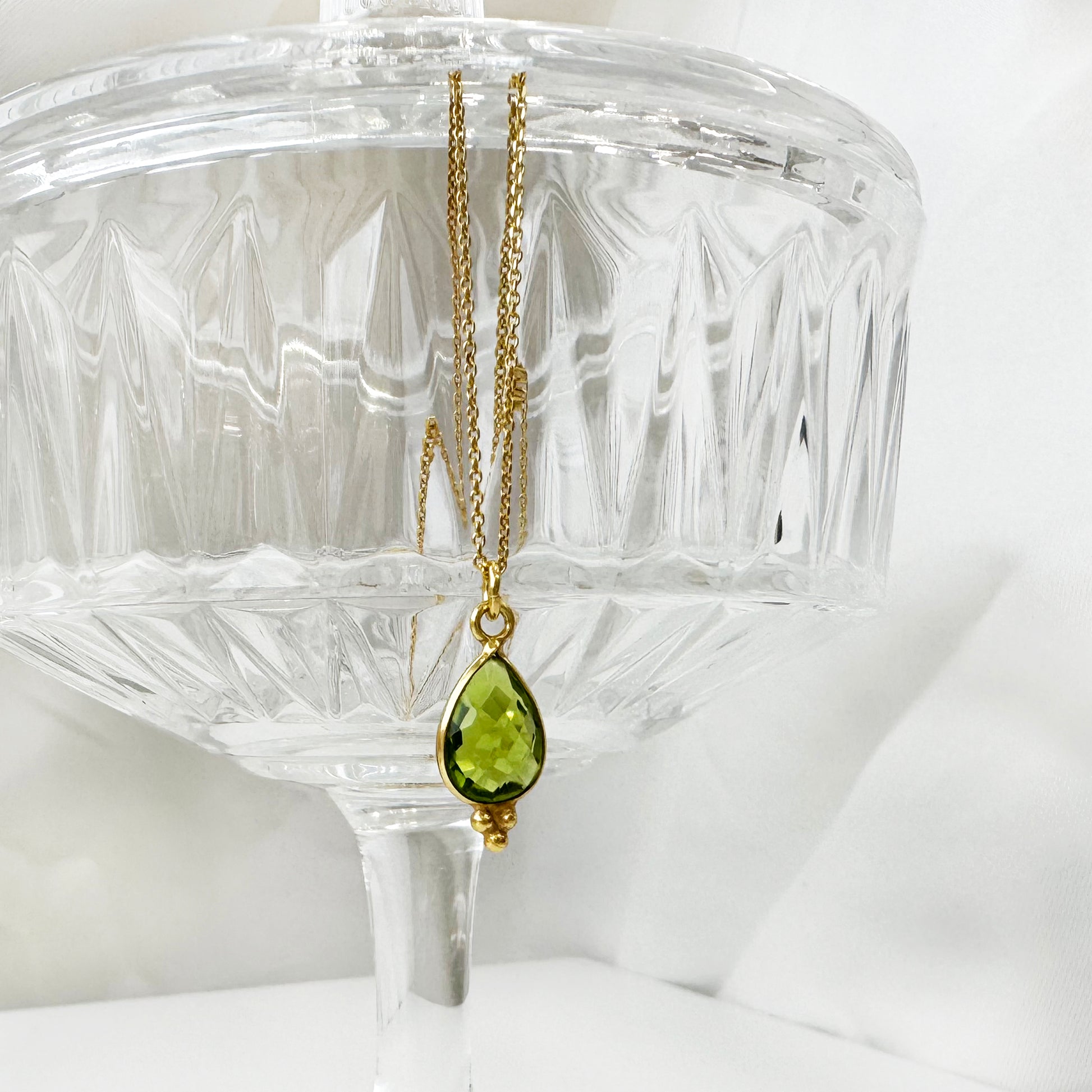 A playful Peridot drop pendant to offer as a Jewelry gift or birthday gift.