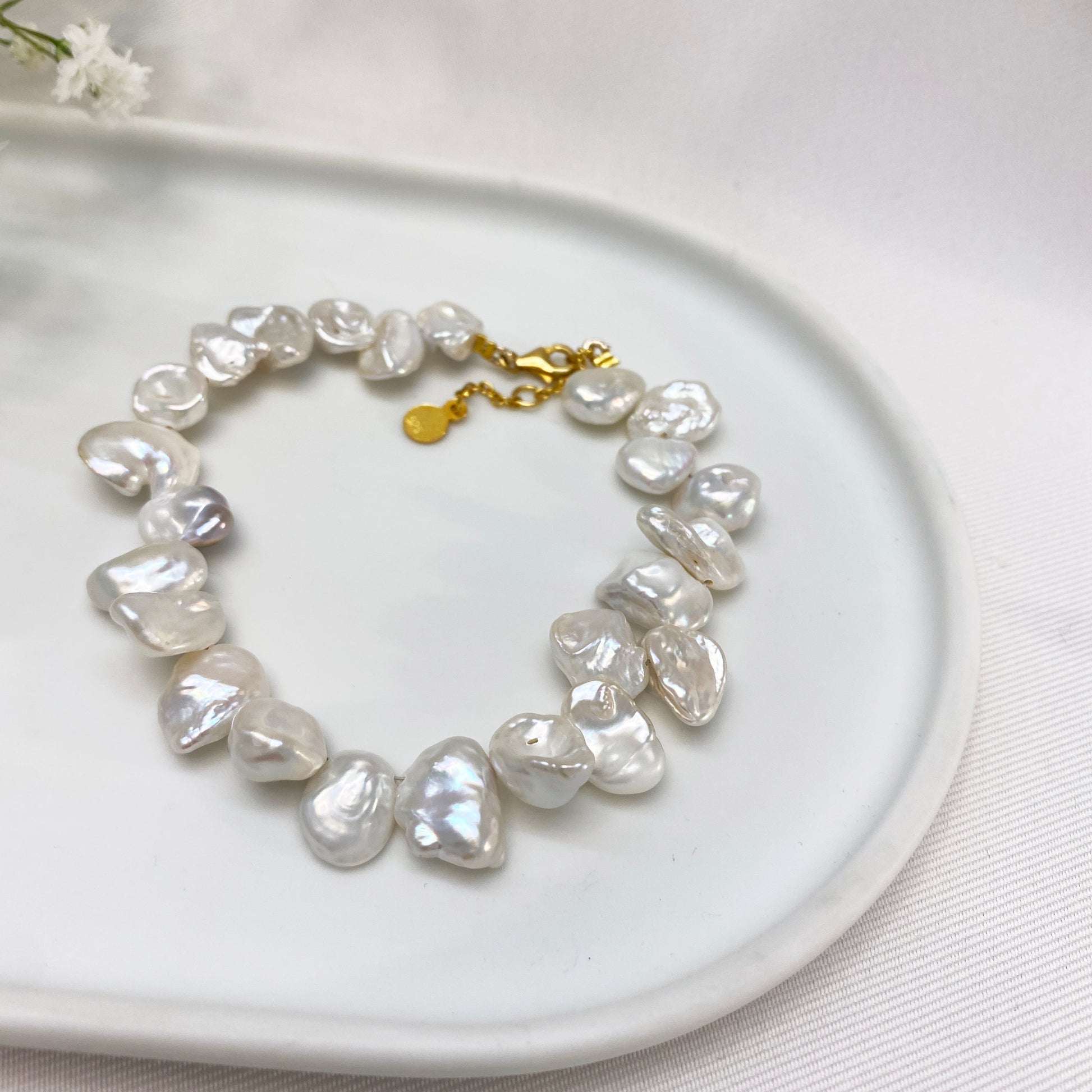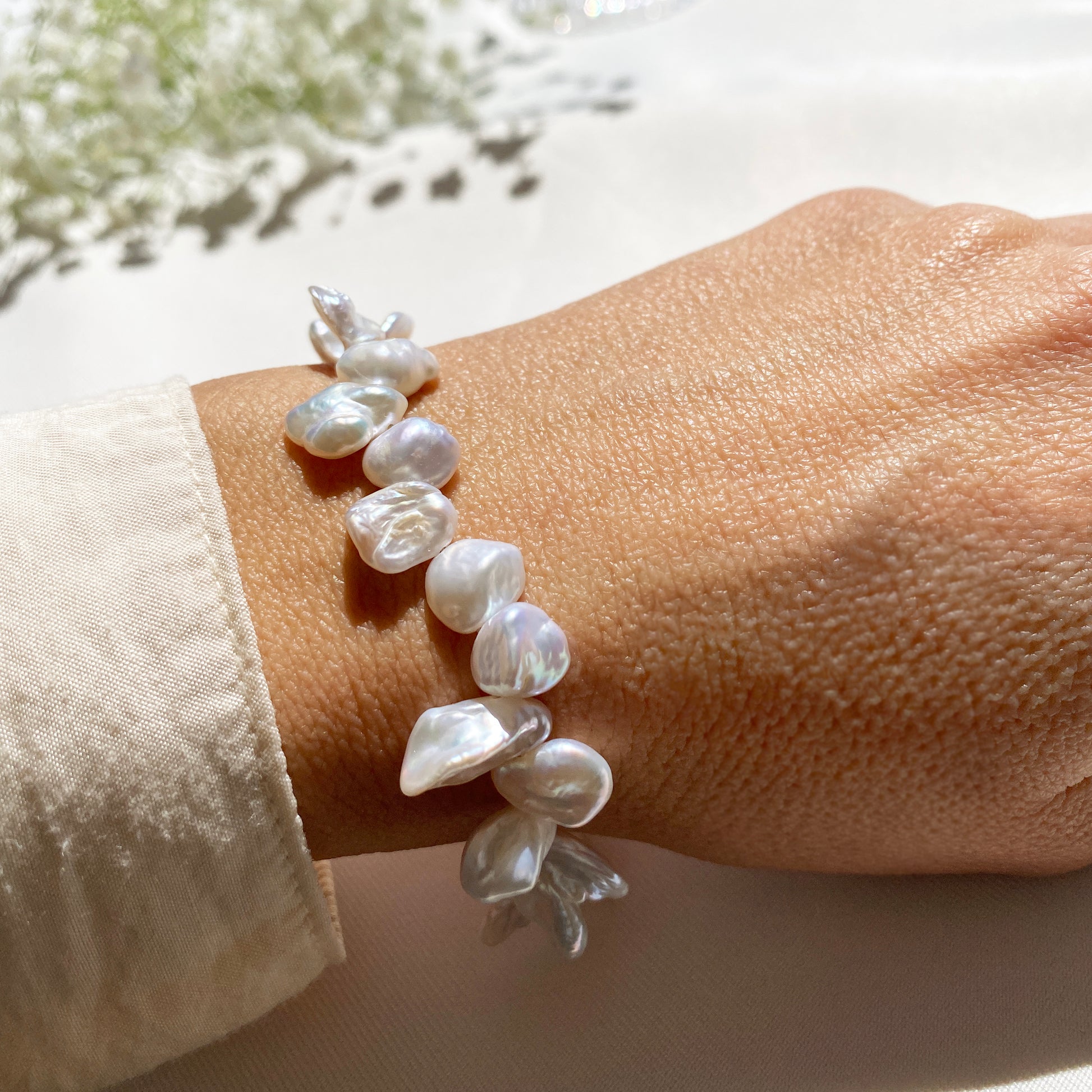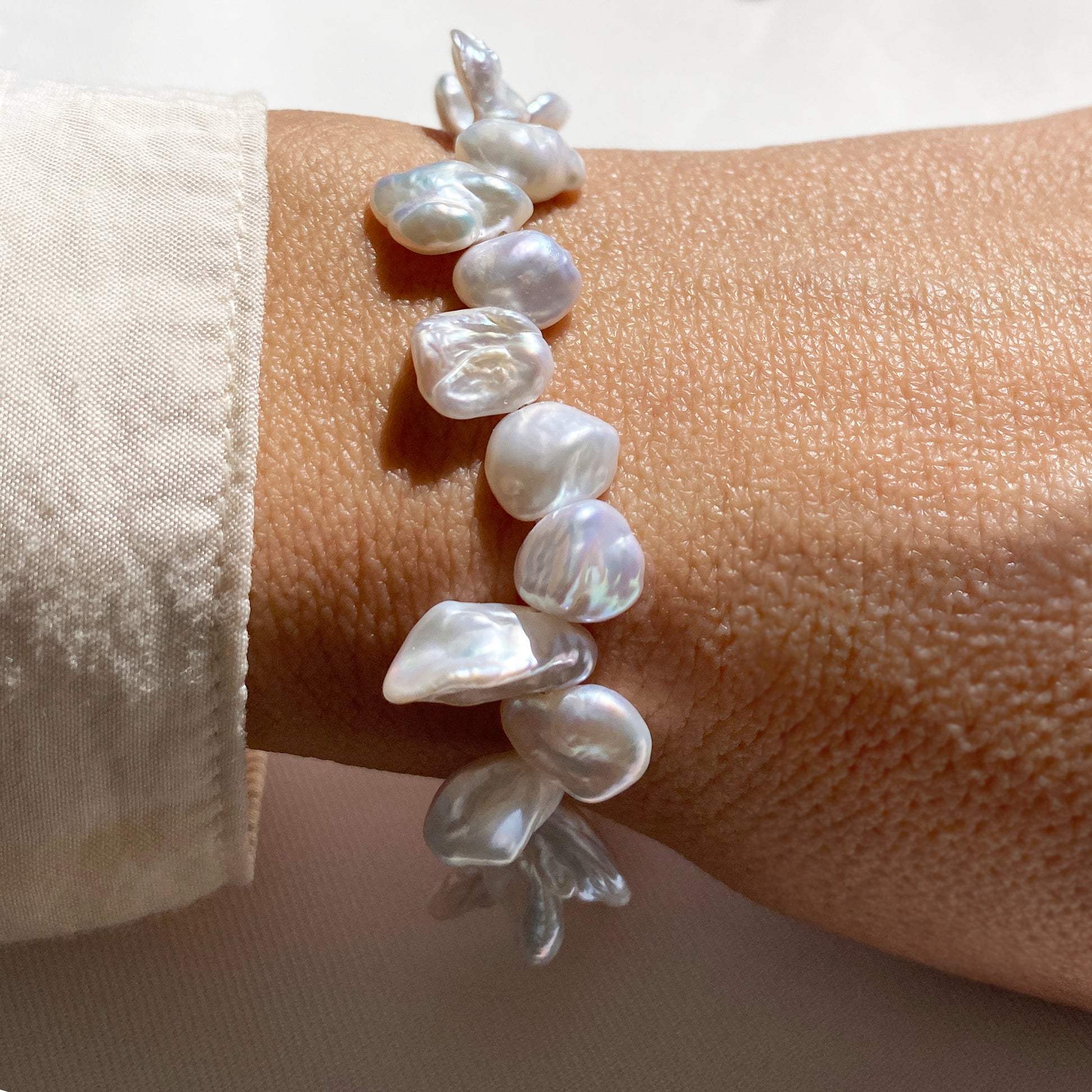 A pearl bracelet with genuine pearls and 925 sterling silver that is 24k Gold finished!