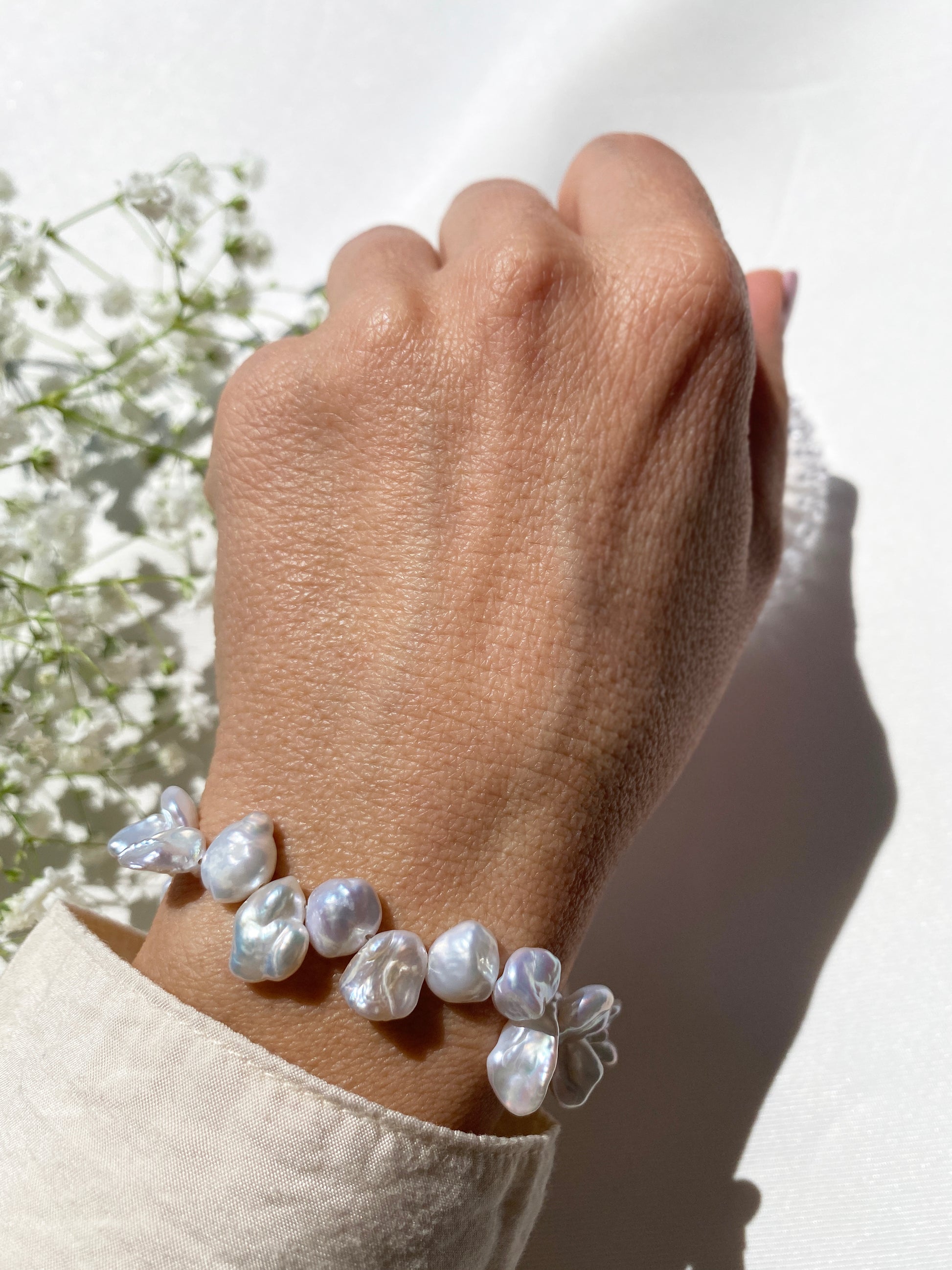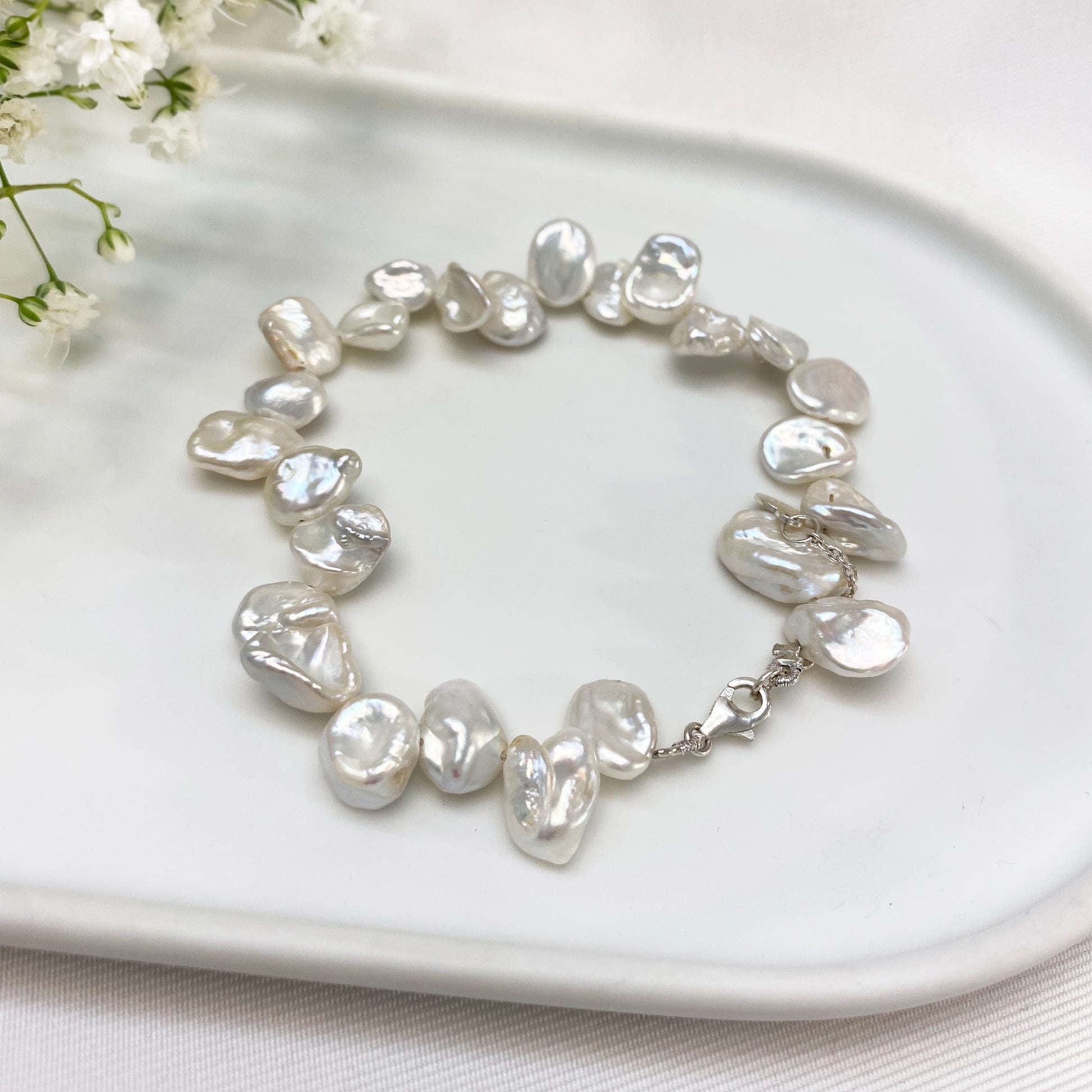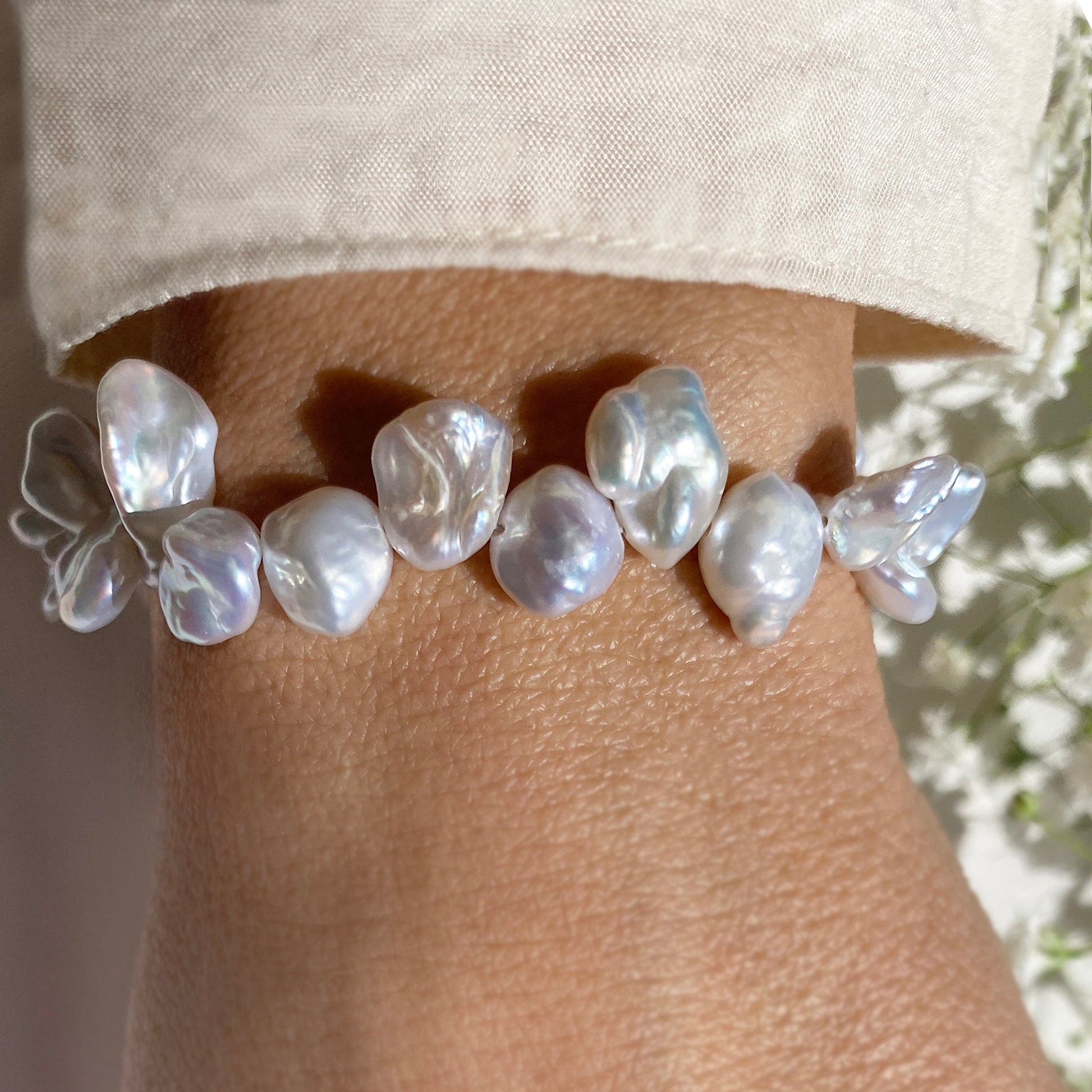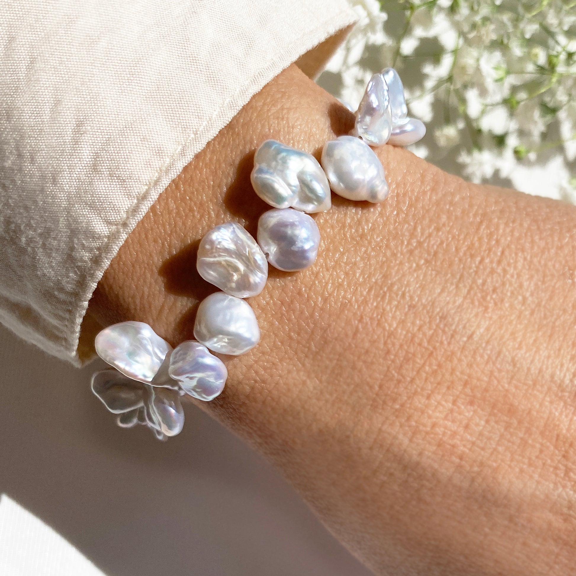 A pearl bracelet with genuine pearls and 925 sterling silver that is 24k Gold finished!